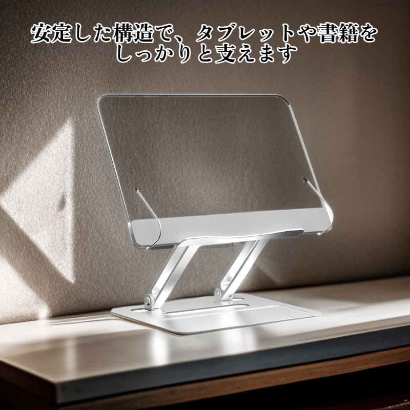 高さ調節可能な読書スタンド・タブレットスタンド アクリル製 オンライン授業用 金属製調節スタンド